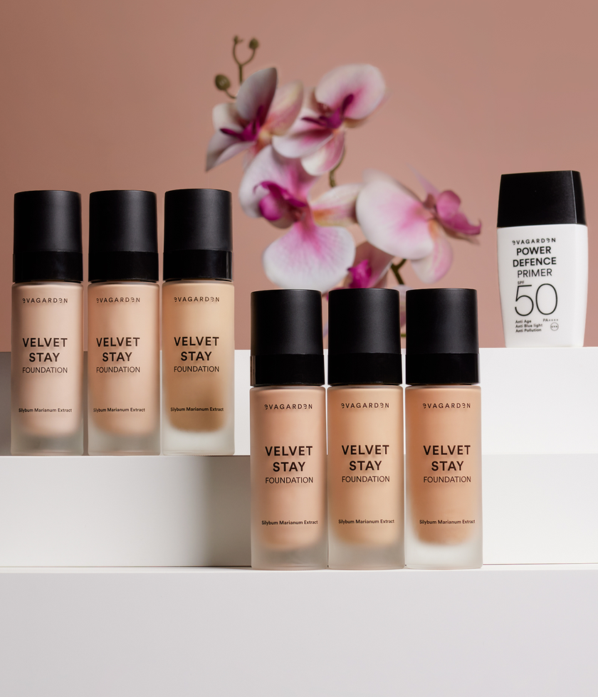 Fondotinta Velvet Stay EVAGARDEN è il fondotinta che unisce alta coprenza, lunga tenuta e leggerezza assoluta in una formula esclusiva che fonde make-up e skincare. Con il suo finish matte effetto soft-focus, minimizza pori e imperfezioni regalando un incarnato uniforme, levigato e naturalmente elegante per tutto il giorno. La sua texture vellutata e impalpabile si fonde con la pelle come un velo sottile, modulabile e confortevole, mentre gli attivi protettivi difendono dall’invecchiamento solare e controllano l’effetto lucido. Ogni tonalità è studiata per sublimare la bellezza naturale, offrendo una pelle perfetta, protetta e impeccabile. Ideale per tutti i tipi di pelle, in particolare normali e grasse. La tua pelle, perfezionata e valorizzata con eleganza, senza compromessi. SPF20 MADE IN ITALY 30ml (1,01 fl.oz.)